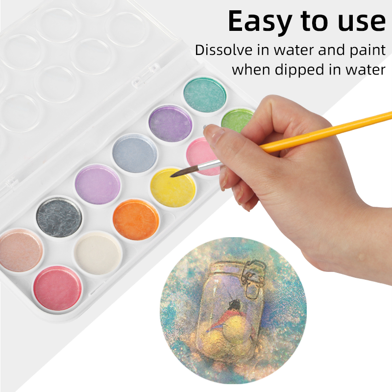 باعتبارنا الشركة المصنعة المحترفة، نود أن نقدم لك مجموعة ألوان مائية معدنية مكونة من 12 لونًا. تكرس شركة Chang Xiang جهودها لتقديم منتجات أنيقة وعالية الجودة وبأسعار تنافسية إلى جانب الخدمة اليقظة. نحن نفخر بشدة بالجودة العالية لبضائعنا ونعطي الأولوية لرضا العملاء قبل كل شيء. إذا واجهت أي مشكلات أو شعرت بعدم الرضا عن منتجنا، فيرجى الاتصال بنا، لأننا ملتزمون بضمان حل سريع.